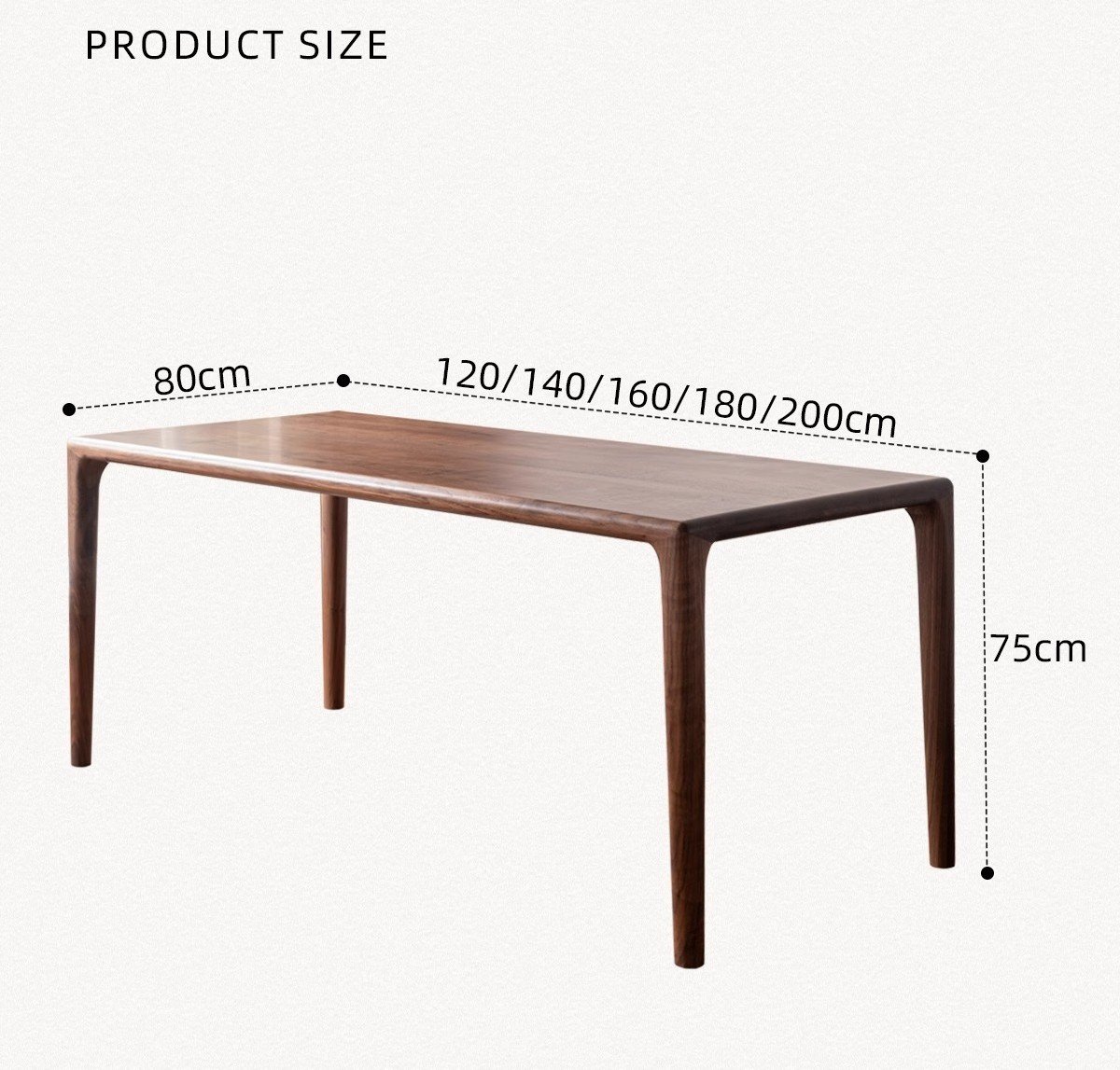 120x80x75cm, 140x80x75cm, 160x80x75cm, 180x80x75cm, 200x80x75cm