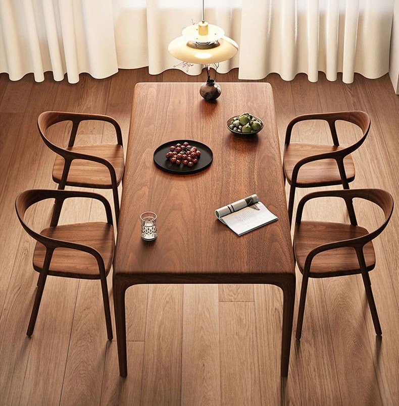 This dining table is designed with families in mind—it’s kid- and baby-friendly, offering a safe, sturdy surface for homework sessions, family meals, and creative projects. The non-toxic finish enhances the natural beauty of the American black walnut while ensuring a healthy and safe environment. Rounded edges and corners create a smoother design to reduce risk for little ones, adding to its practicality for households with young children.