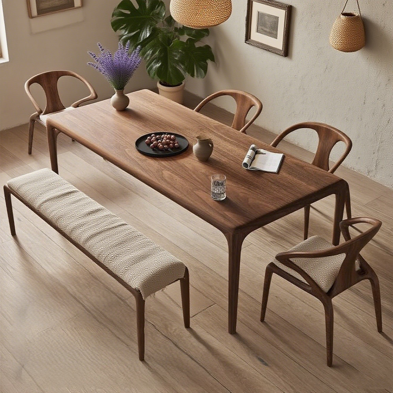 Our solid wood dining table, crafted from premium American black walnut, offers the perfect balance of beauty and strength, making it a centerpiece for family gatherings. This luxurious piece of furniture amplifies the sophistication of any dining space while complementing a range of interior design styles—from rustic to modern. Designed to withstand daily use, this table is a long-lasting investment that grows with your family.